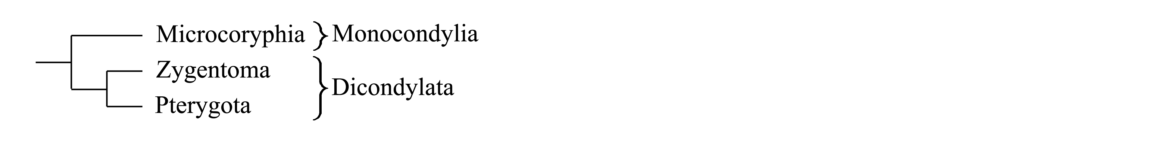 (3) Наличие у многих Dicondylata гонангула; однако у Microcoryphia имеется вестигий гонангула [см. Amyocerata (7a) и ниже, Microcoryphia (11)], так что его наличие у Dicondylata – не апоморфия, а плезиоморфия.