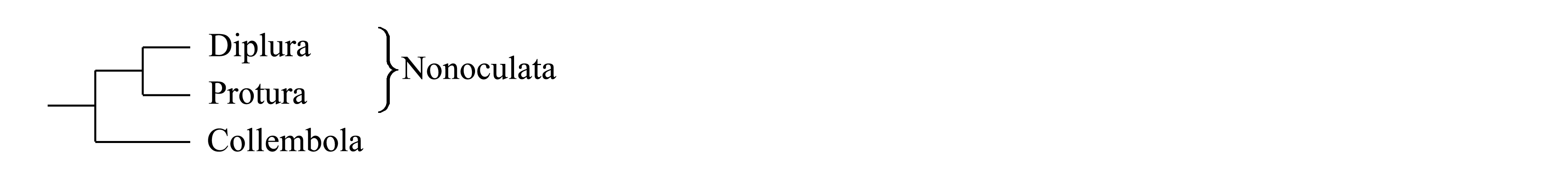 II. Деление Entognatha на Nonoculata и Collembola. Высказана альтернативная версия о филогении Entognatha, согласно которой Diplura и Protura являются сестринскими таксонами, на основании чего объединены в таксон Nonoculata Luan et al. 2005. Для Diplura и Protura не указано ни одного общего признака, кроме утраты глаз (которая имеет место также у многих Collembola и других почвенных насекомых). В качестве обоснования голофилии Nonoculata указывают лишь на сходство в нуклеотидных последовательностей некоторых генов, но ни одного конкретного общего генного признака для Diplura и Protura в литературе не названо (см. I.4.2.7).