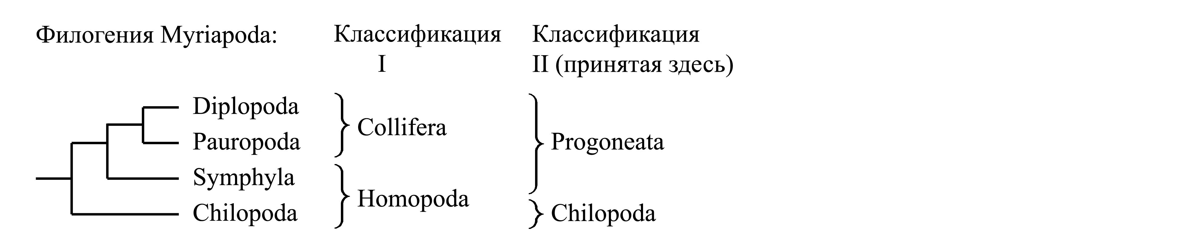 Классификации Myriapoda. К Myriapoda относятся 4 четко очерченных таксона – Symphyla, Diplopoda, Pauropoda и Chilopoda (см. ниже).