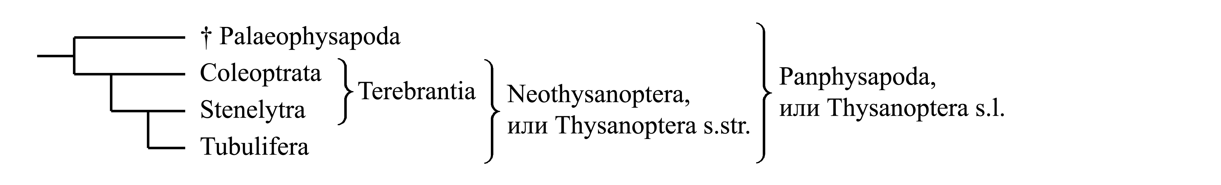 Классификация Panphysapoda. Panphysapoda (или Thysanoptera s.l.) делятся на вымерший таксон Palaeophysapoda и представленный в современной фауне таксон Neothysanoptera (или Thysanoptera s.str.).