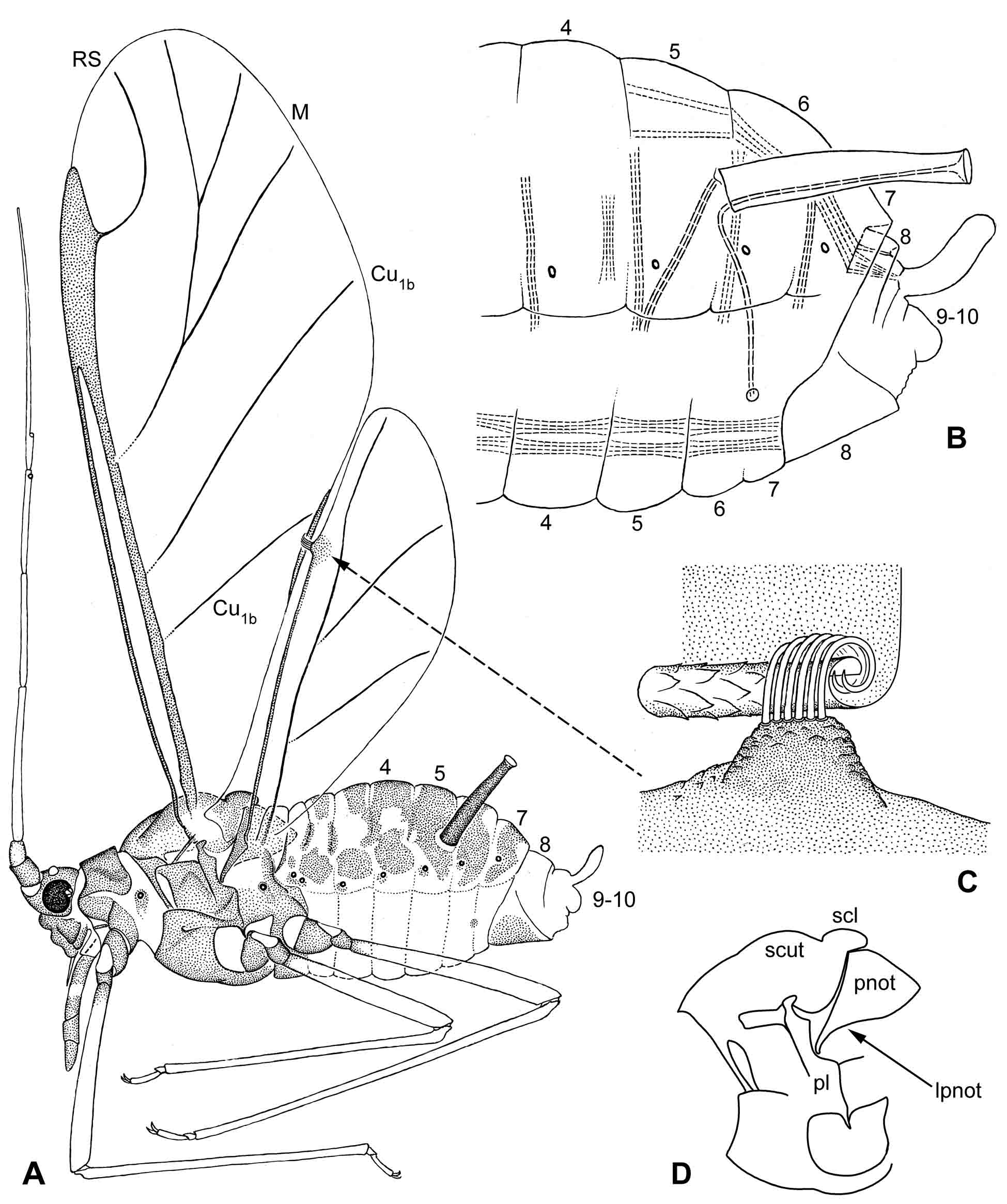 Ðèñ. 9.11.1. Gynaptera: Impatientinum asiaticum Nevsky 1929, êðûëàòàÿ ñàìêà èìàãî. A – âèä ñáîêó; B – âåðøèíà áðþøêà (ìûøöû ïîêàçàíû ïðåðûâèñòûìè ëèíèÿìè); C – ñöåïêà ëåâûõ ïåðåäíåãî è çàäíåãî êðûëüåâ, âåíòðàëüíî (ïåðåäíåå êðûëî ñðåçàíî, äèñòàëüíàÿ ÷àñòü óäàëåíà); D – îáîçíà÷åíèÿ ÷àñòåé ñðåäíåãðóäè íà ðèñ. A. Óñëîâíûå îáîçíà÷åíèÿ: 1–8 – ñåãìåíòû áðþøêà; 9-10 – ñëèòûå IX è X ñåãìåíòû áðþøêà; lpnot – ëàòåðîïîñòíîòóì; pl – ïëåéðèò; pnot – ïîñòíîòóì; scl – ñêóòåëëóì; scut – ñêóòóì.